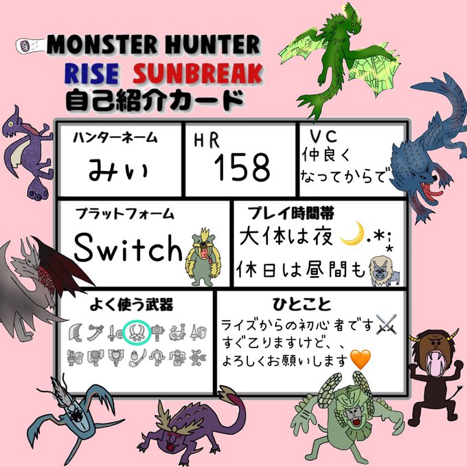 #モンハンライズ自己紹介カード