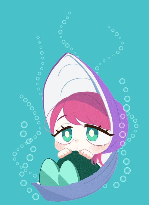 最初の時のシャンプーハットがメンバーカラーですごく可愛くて、ヤングオイスターにしか見えなくて描いたwww