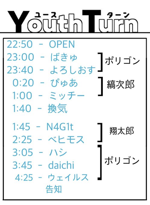 #ユースターン の #YT出演リスト とは別ですがこちらも敬称略