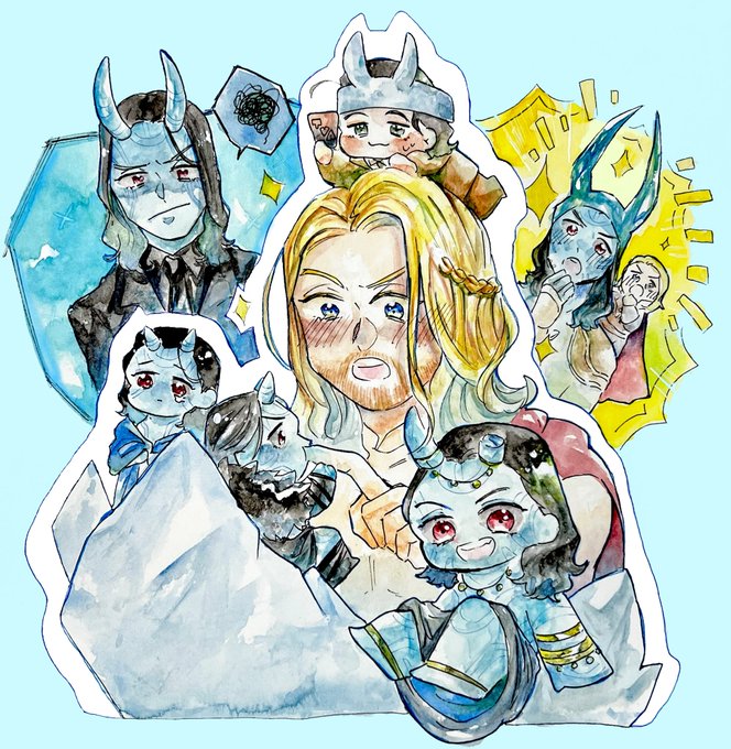 こちらの絵既出っぽいですがどうしてもお納めしたく…語彙カッスカスですいません😭下にはかけませんでしたがてるさんの色使いが本当に好きです。アイコンにされているヨトゥンロキちゃんとか特に…!
