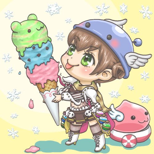 19周年のイラストコンテストで銅賞と特別賞をいただいた2枚と、2020アイテムデザインコンテストで賞を頂き実装していただいた『トリプルアイスクリーム』