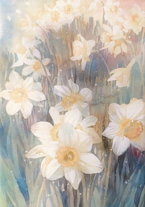 妹(@Romona_123)からラッパ水仙をもらいました。駆けて行ってしまった妹の背中を見つめながら、見られないように小さく笑うお兄ちゃん。
