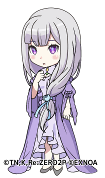 大塚さんのキャライラストEMT❤。そしてエミリアたんのミニキャラ可愛い❤💜❤💙💚。