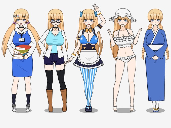 ミチハスさん(@michi_hasu)のところのオリキャラ、リナ・ベル・ロールちゃんであれこれ。(各衣装は適当にチョイスして作成)