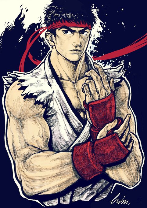 11年前に描いたリュウの絵を少し手直し。当時は携帯SNSでお絵描き友達と格ゲーキャラ描き祭りしてたな〜