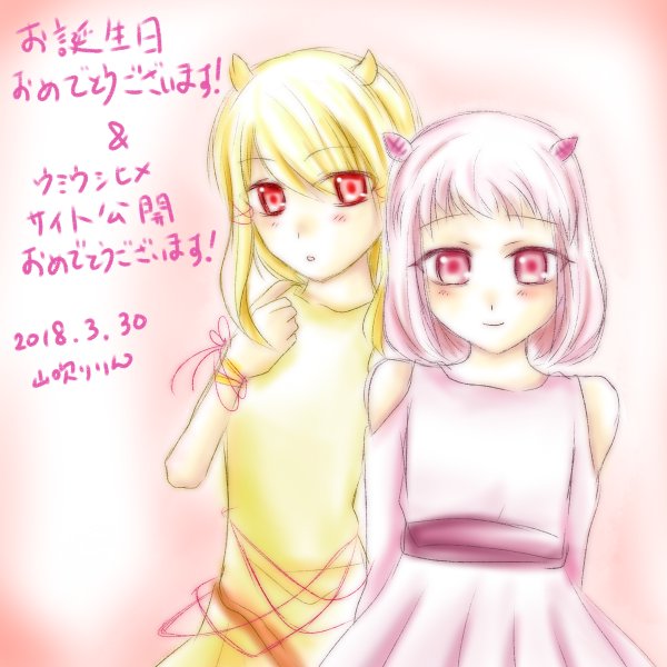@AQUALAPISLAZULI わー!蒼瑠璃さんサイト公開おめでとうございます!!幻想的で可愛い雰囲気たっぷりで素敵です…!あの、お誕生日の御祝い&サイト公開の御祝いにルシラちゃんとリリンちゃんのイラスト描かせて頂きましたーー!!よろしければお納め下さい…!