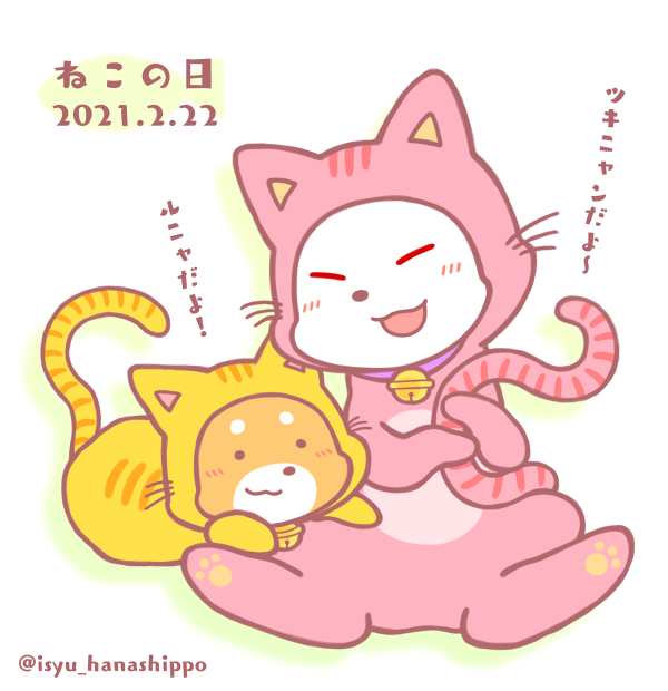 わー💦やっと着替えられたよ‼️今日は2月22日の猫の日だから…毎年こうれいのルニャです…☺️今年はツキニャンがきてくれました✨ステキな色だね~とっても似合ってるよ‼️ツキはなんだか本物のねこさんみたいだねぇ🐱