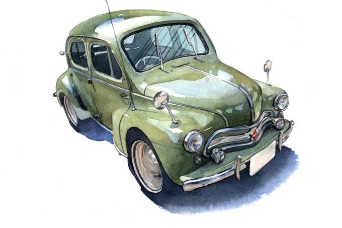 skeb納品しました!依頼者さんのOCのVTuberの女の子を描かせていただきました。夏らしい絵ということでルノー4でドライブ旅行中のひとコマにしてみました。