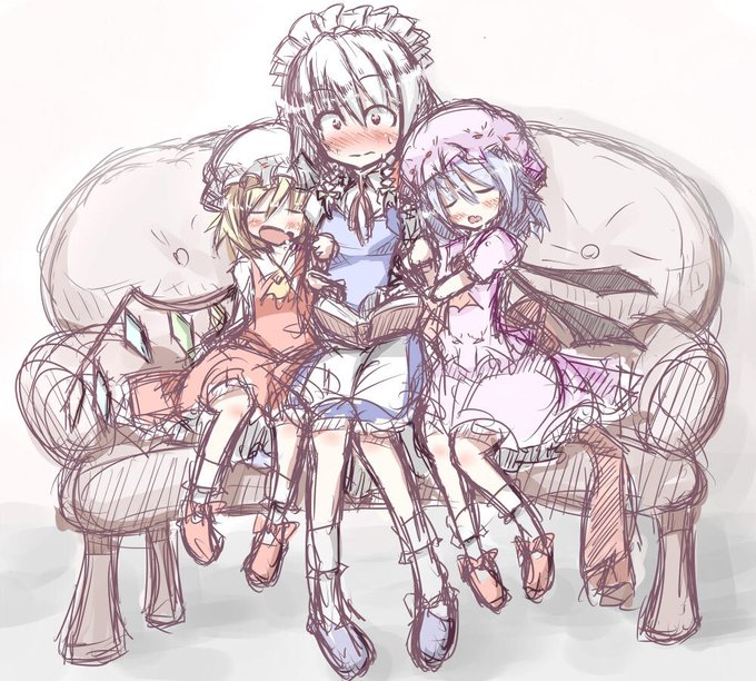 レミフラ咲夜の三人がベッドに寝転ぶ感じです