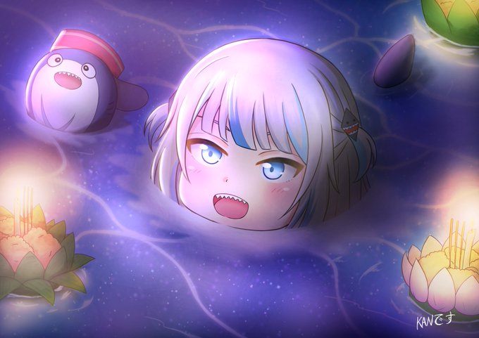 So I drew Gawr Gura on the theme of Loi Krathong.