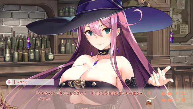 飲んだくれのセクシー魔法使い「ベロニカ」。見よ!このたわわに実ったロケットおっぱいを!言動は不真面目だが魔法の腕前は一級品!ダリアの良きパートナーでよく一緒に冒険に出かけている。
