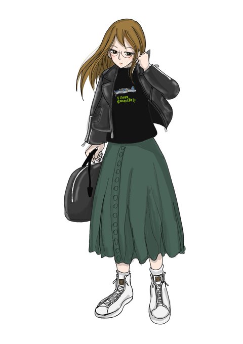 大人気のロックTを纏う。外出したはいいが「私の柄に合わない気がしてきた…」と気になってしまい知り合いに見つからないよう気配を消し歩く…そう、メガネさんは意外とかわいいのだ❗