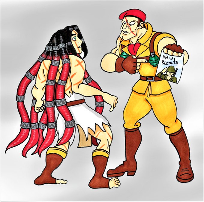 I really wanted to make a crossover between Street Fighter and Disney Tarzan. I think those characters fit very well. #streetfighter #capcom #disney #tarzan #rolento #necalli #ストリートファイター #ロレント #ネカリ #ストリートファイター35周年