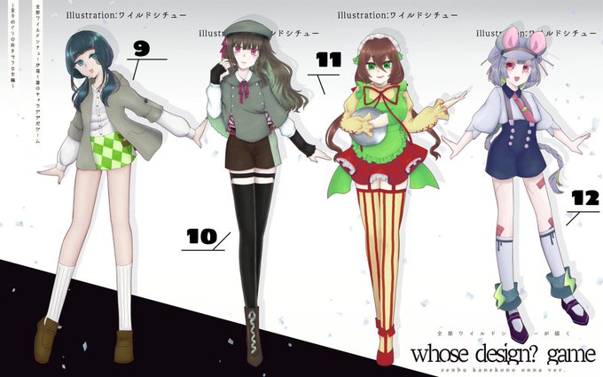 #ワイルドが全部描く金子めぐりの女誰デザ 参加させていただきました! 全員ワイルドシチューさんが描いてます。 右田歩がデザインした女を当ててね。