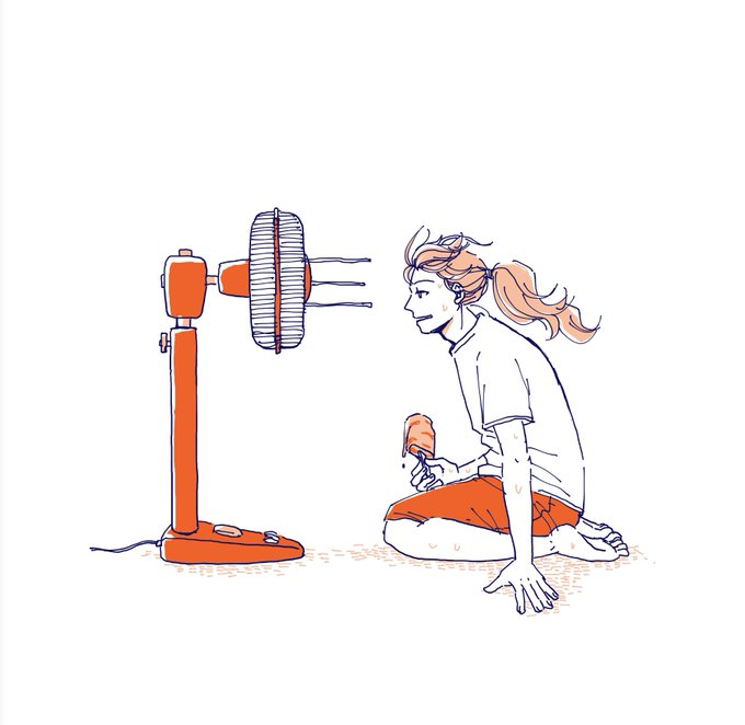 #mikepunch #猫のイラスト #酷暑 #ご自愛を #お昼寝推奨 #仕事は非推奨 #おにぎり猫のものがたり #扇風機で遊ぶ #ワレワレハウチュウジンダ