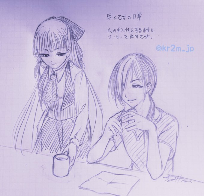 #うちの子紹介 のタグを見つけて、ここぞとばかりに紺さんと乙女ちゃんを紹介……TRPG『マギカロギア』て使っているキャラ『幸野屋紺』と、その元型【死の乙女】。TRPG用のキャラだったけれど、お気に入りになりすぎて、TRPGシステムに関わる部分を変えて一次創作の物語に組み込んでしまった。
