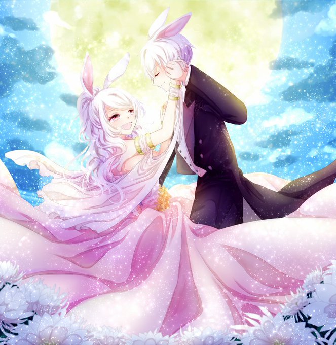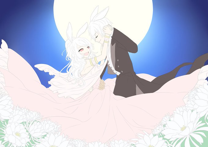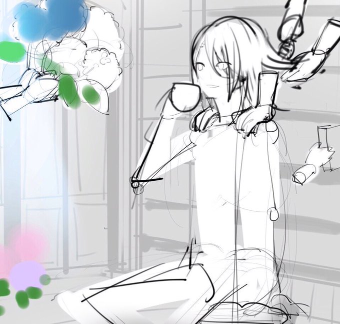 全体の色分け後、ここまで塗り進めました!人物、花、空、の3種類のレイヤーセットでそれぞれ作業しています。いまは花びらを塗ってる途中です~。 #一次創作カレンダー企画