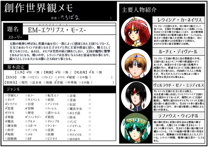 終わった世界、終わった物語の登場人物達の一片を描く世界観です。筆者の中では。