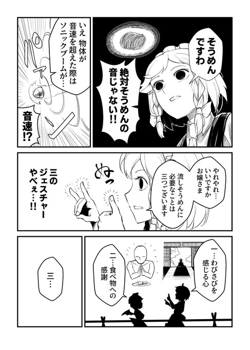 2023秋例大祭にて、紅魔館組が流しそうめんする新刊を頒布予定です。「竹筒という名のサーキットで、スピードに飢えた白き獣たちが一陣の風となる…!」サンプルに序盤の数ページを載せておきます!何卒…ッ!! (サンプル1/2)