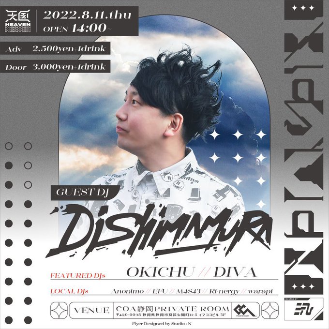 ADV:2,500YEN(1DRINK),DOOR:3,000YEN(1DRINK)
