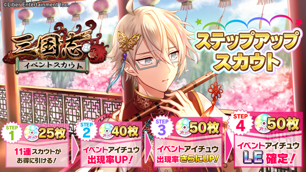 【スカウト】4/19 0時より「三国志イベントスカウト」を開催!椿、朔空の2名が参加♪ また開催前にチェンジ前を公開!STEP4で11連目にイベントアイチュウLEが確定!お楽しみに! #アイチュウ