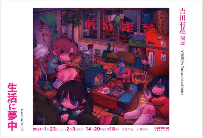 吉田有花個展「生活に夢中」、つのつの 下村悠天 サワダモコ オギハラフウカ グループ展「裏kawaii Ⅱ」、いずれも本日18時まで。お見逃しなく、ご注文は下記から!