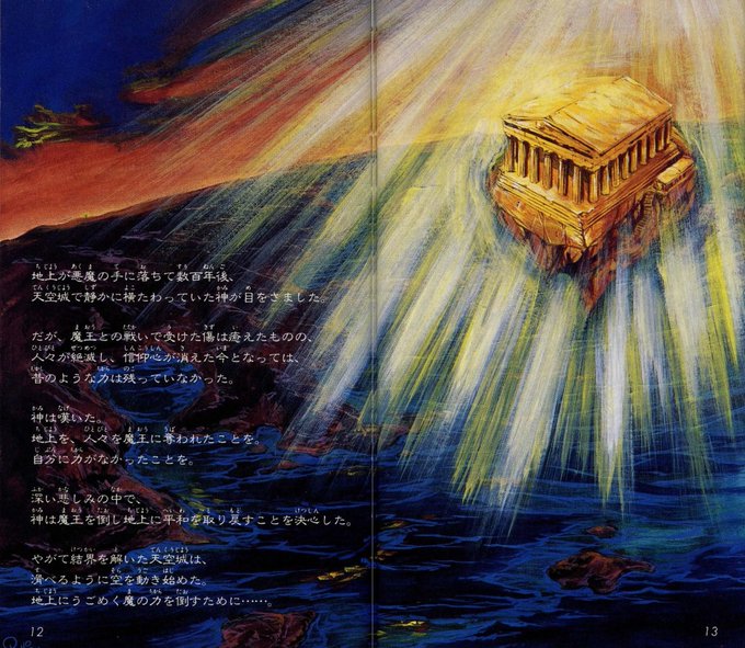 Some of the manual illustrations created by Ryō Nakamura / 中村亮 for the Japanese version of Actraiser.