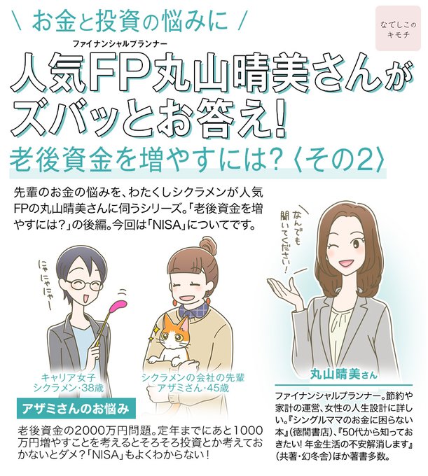 仕事柄、お金のことについていろいろと相談を受けることの多いシクラメンです。会社の先輩アザミさんから相談を受けました。人気FPの #丸山晴美 さんと一緒に、お金のお悩みについて伺います!