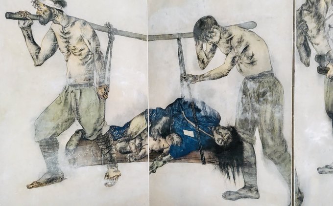 丸木位里・丸木俊《原爆の図》シリーズ 丸木美術館2階の第1部〜8部が撮影可能になってた この画業はイデオロギーを抜きにして純粋に日本美術史上の成果として見てももっと評価されるべきだと思う 凄い仕事を遺しているので美術を志す人には一度見に行って欲しい