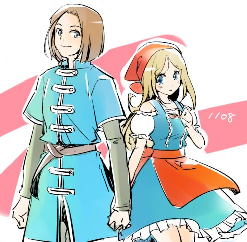 DQ11、主エマの日らしいので。 Switch版でも嫁にしました。 ベロニカに「もう!デレデレしちゃって!」と怒られるので割とバカップルだと思ってます。