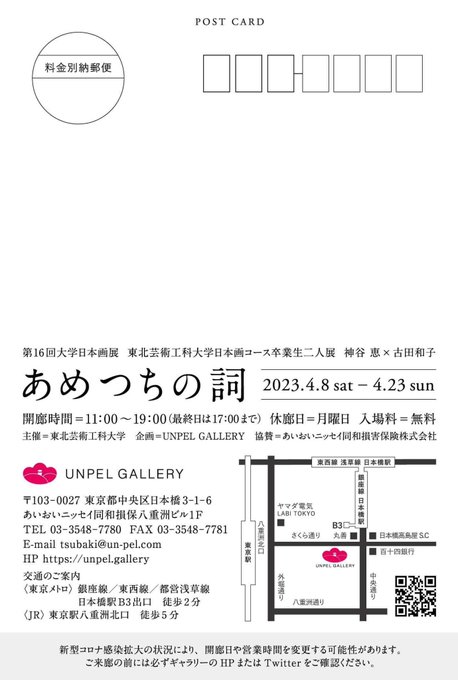 ギャラリーのHPを載せておきますので、詳細はそちらでご確認ください。