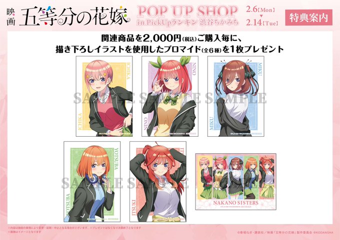 明日は五等分の花嫁TSUTAYAコラボですね!今回はいつもと比べて取扱店舗が少ないのでちょっと早めに出掛けようと思います!今回のデザインもとても可愛いですね✿゚❀.(*´▽`*)❀.゚✿