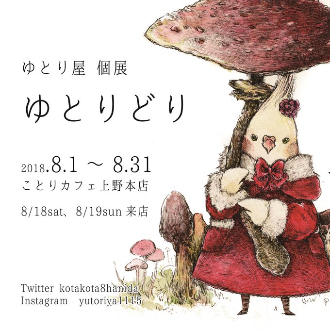 8/1-8/31 ゆとりどり(原画展示)ことりカフェ上野本店