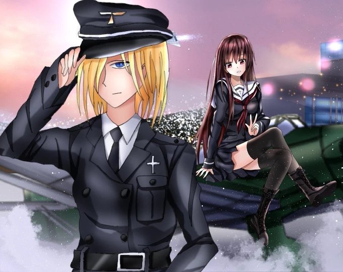 過去絵ですが 姉妹の親衛隊 メンバー紹介 左から 京本純也(グラサンの人) エルンスト・リヒター ミハエル・ハルトマン #絵描きさんと繋がりたい #過去絵 #うちの子 #篠咲さゆり