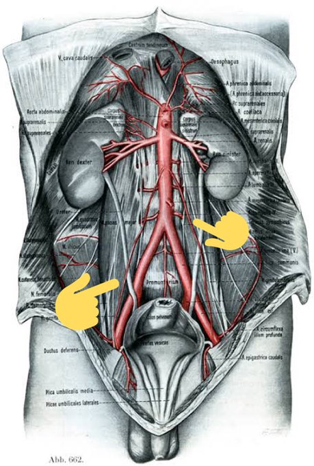 精巣動脈は腎動脈レベルからめちゃくちゃ長い経路を取るし、精巣静脈は清掃近傍で動脈にまとわりついて精巣へ向かう動脈血の温度を下げるラジエーターを形成した後に腎静脈レベルへ戻っていく…