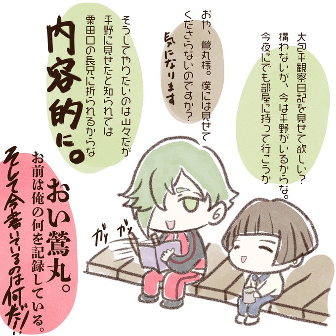 #今まで描いた中でも厳選カワイイ鶯丸を晒してください 誰かと一緒が多いな