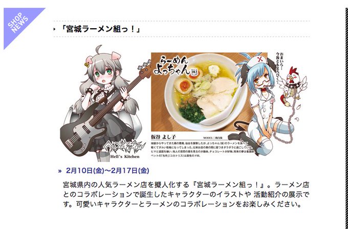 #仮谷よし子 だよ。「宮城ラーメン組っ!企画展」明日からだからよろぴく…。仙台市青葉通りの「KURAX」6F、日程は2月10日〜17日。HPで紹介もされているみたいだからまぁ見てみて→https://t.co/vJIyDFH28D