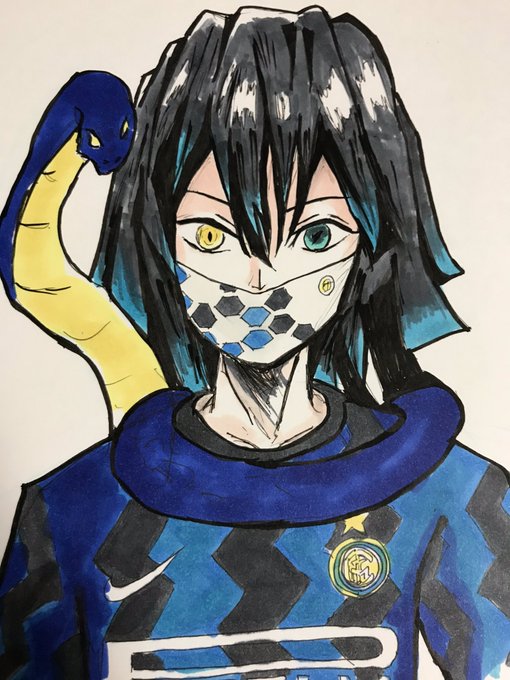 蛇キャラ、黄と青の瞳だが羽織がインテリスタ的には一番良くないカラーリングなので20/21のジグザグユニというこれまた伊黒さん仕様?なユニとインテルマスク着てもらったw