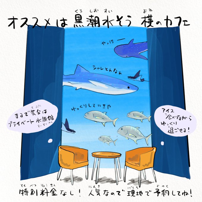 特にオススメなのは黒潮水槽横のカフェ☕️