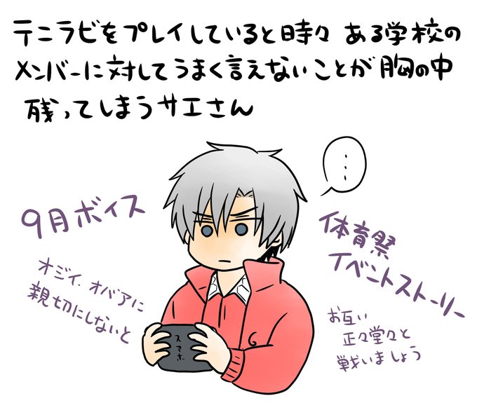 学校曲以外にバレキスサマバレ個人デュエット楽曲全部あってシーンカードにシチュカにセリフにマイスペ立ち絵まであるのに何故か本体はテニラビ実装されなかったサエさんお誕生日おめでとう🎉 #佐伯虎次郎誕生祭2025