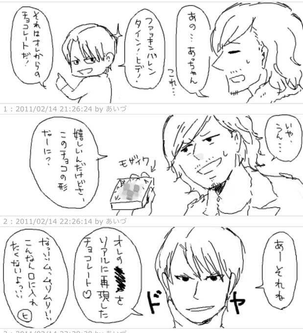 バレンタインといえばね、めちゃくちゃ昔ふざけて描いたBUCK-TICKの絵を思い出しちゃうね。絵柄も全然違うね俺でなきゃ見逃しちゃうね。