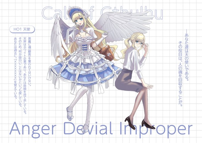 CoC【かいぶつたちとマホラカルト】 HO4 天使 #繋がらなくていいから俺の探索者立ち絵を見てくれ