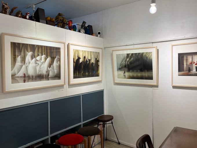 2019年ギャラリーハウスMayaでの個展で発表され、見るものを圧倒した連作「白い森」と「黒い森」の世界が再び動き出しました。重低音とともに不思議な生き物たちの声が聴こえてきそう。#牧野千穂 #個展閑話 #大きな穴のほとりでねむる