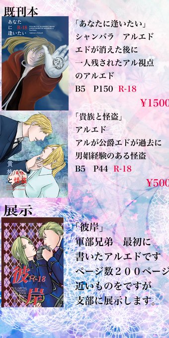 良い兄さんの日(11月23日)アルエドウェブオンリーに参加してます。当日仕事のためほとんどいませんが、最後あたりぐらいには会場に遊びに行きたいと思います。