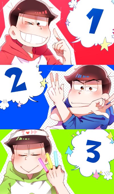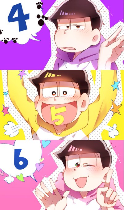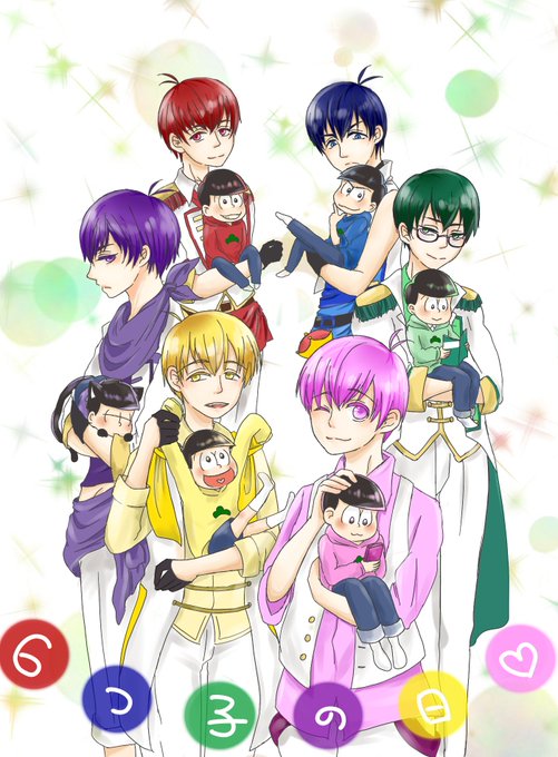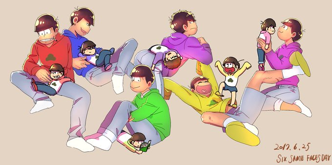 むつごのひなのかーーー!!!既存絵しかないけどおめでとう!!! 案外6人全員の絵が少なくて……本当に初期から最近のまでの4つ! #6月25日は六つ子の日 #六つ子の日2017
