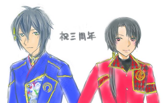 刀ミュ三周年おめでとうございます (前にうっかり衣装展示のスクショはスマホごと壊したので 細かい部分不明ですあと落書きが雑ですが おめでとうございます