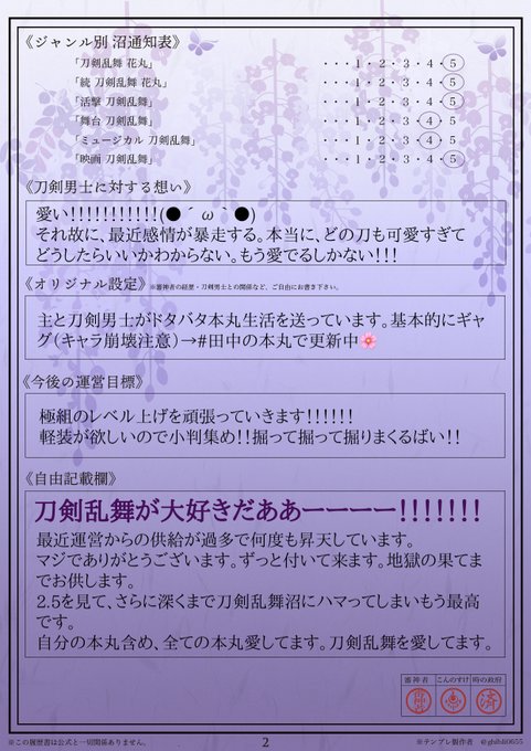 久しぶりに審神者履歴書を書きました〜〜!!