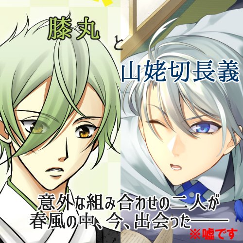 サークルカット(変えるかも)、「源氏も山姥切もあるよ!」と既刊の表紙を何も考えず合わせたら、センスがマイナス値すぎて事故が起きたので、ヤケになってアオリをつけてみました。