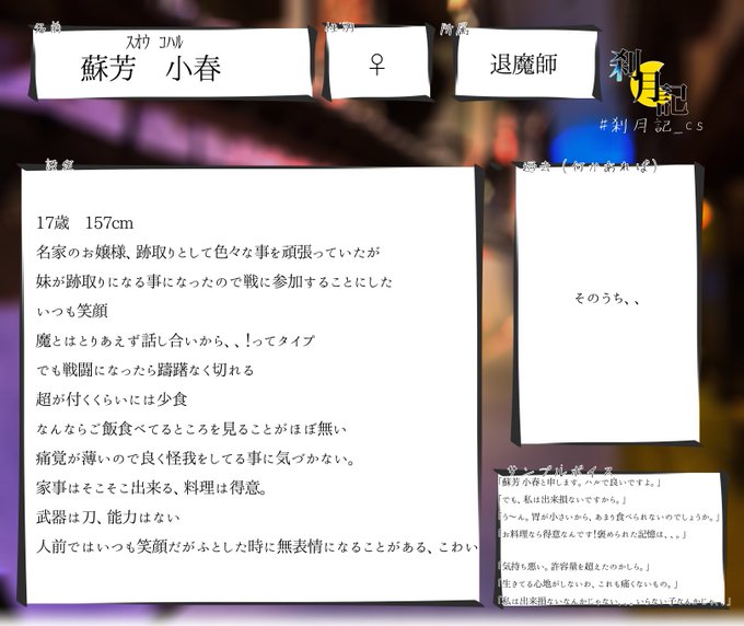 #刹月記_二次cs #刹月記 ひとまず1人目です。よろしくお願いいたします( *´꒳`*)