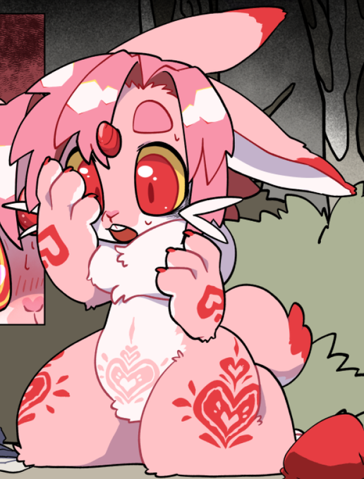 ついさっき納品したskebeイラストの大丈夫そうなところを切り抜いてみる。完全に自分で考えた突発創作っことケモノなので見せたい。可愛く描けたので